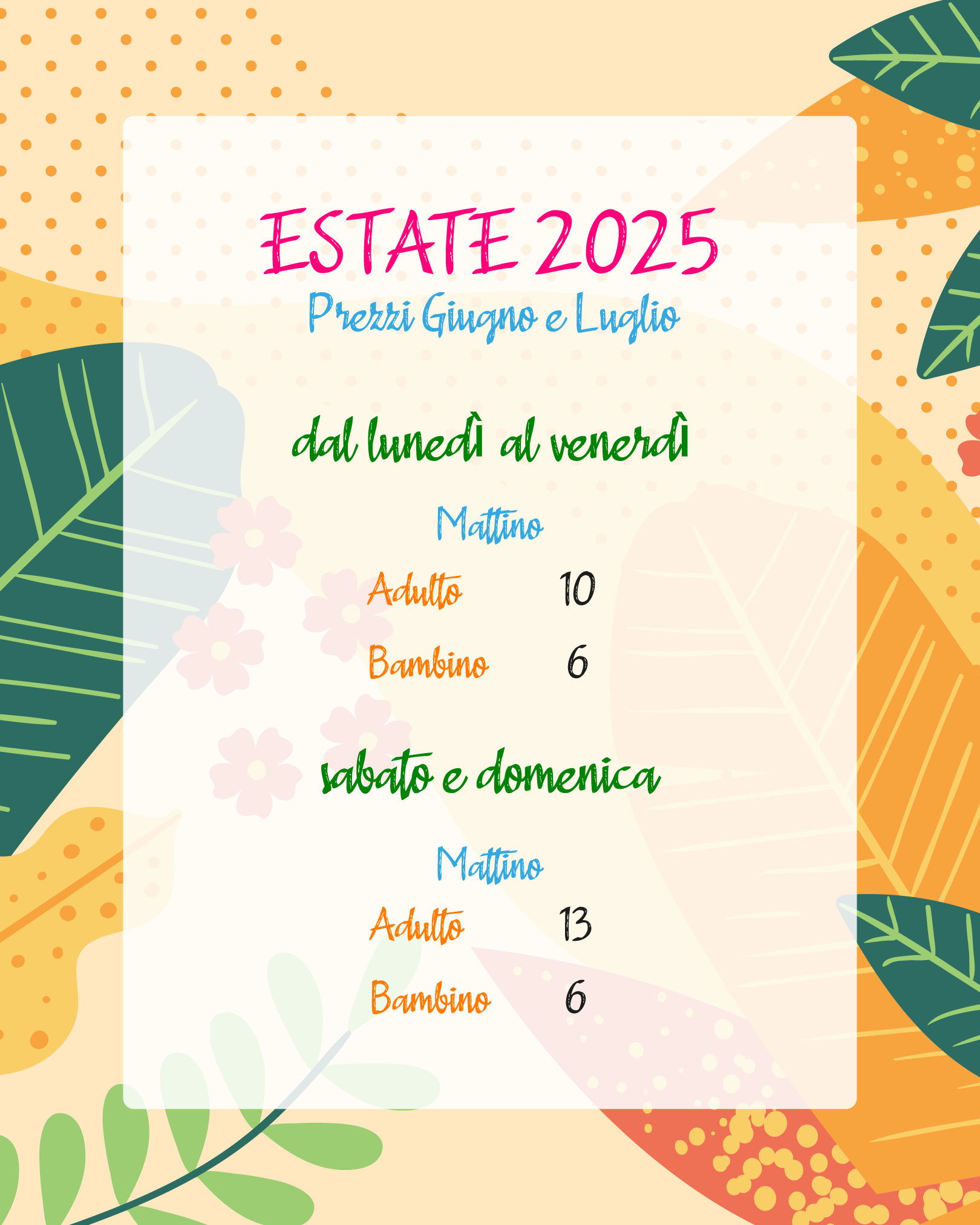 Il biglietto ADULTI comprende l'ingresso alle piscine ed un lettino.